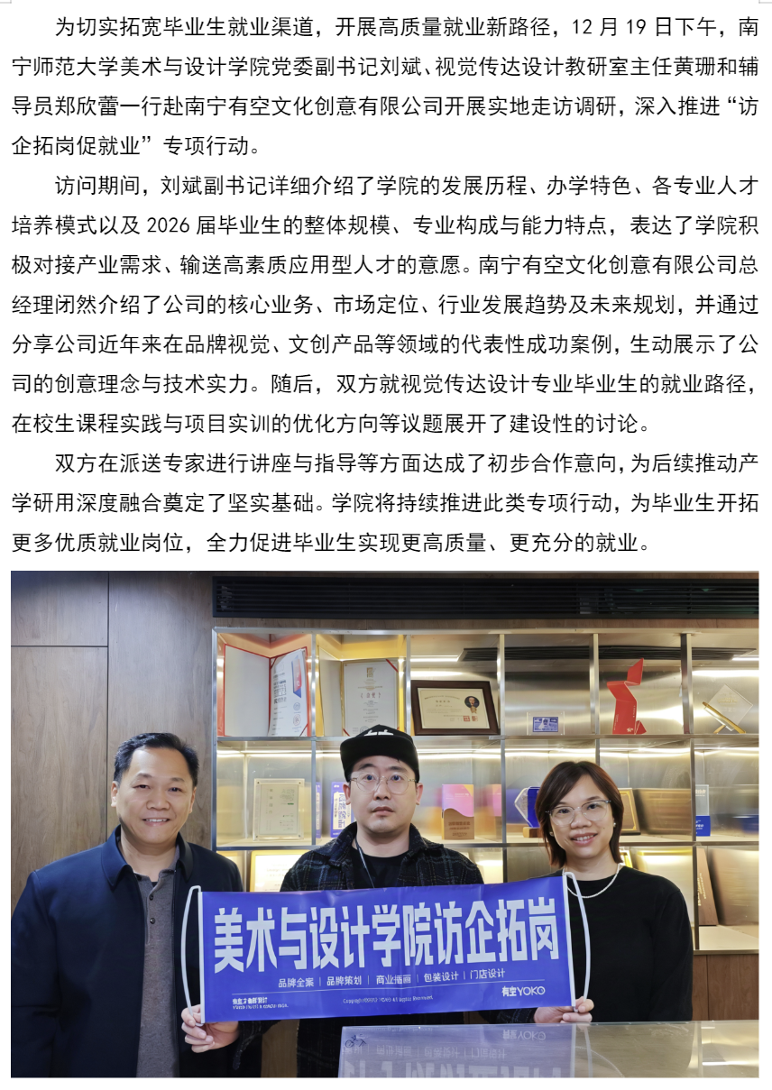 【访企拓岗促就业】betway必威西汉姆联赴南宁有空文化创意有限公司开展访企拓岗活动